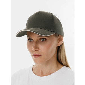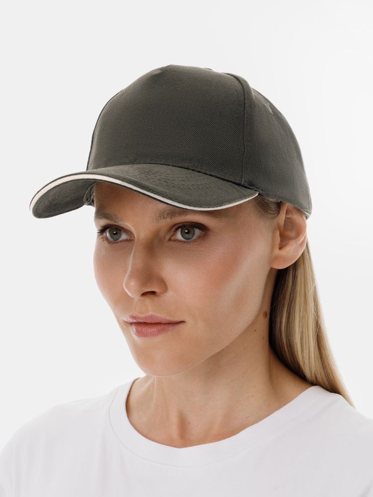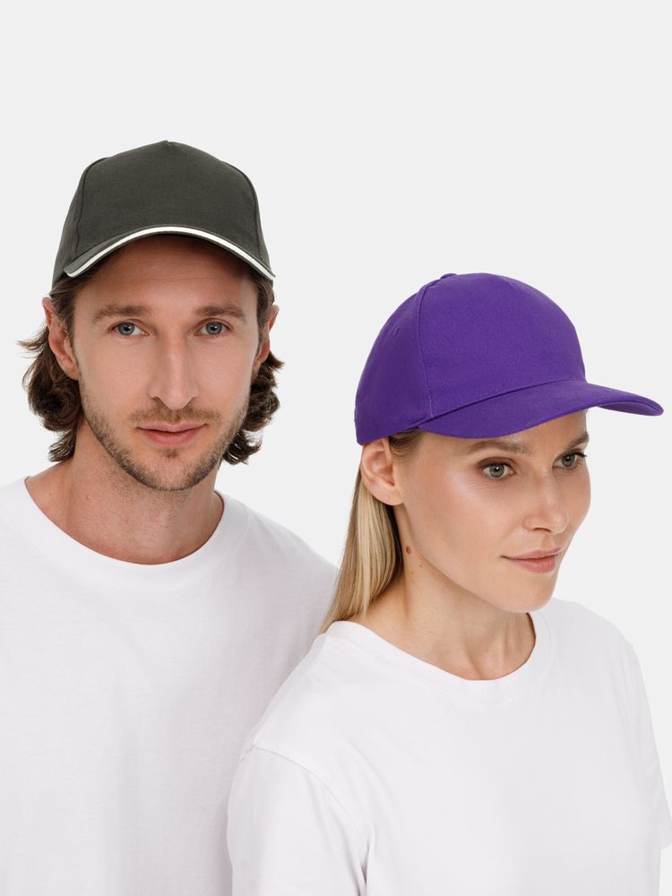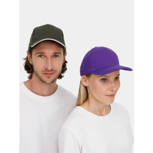 Модель бейсболки с 5-ю клиньями без лобового шва из плотного чесаного хлопка.