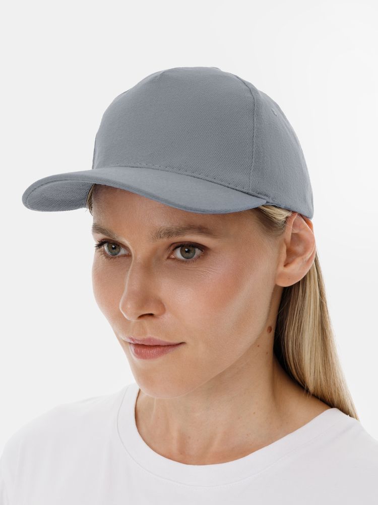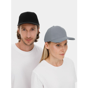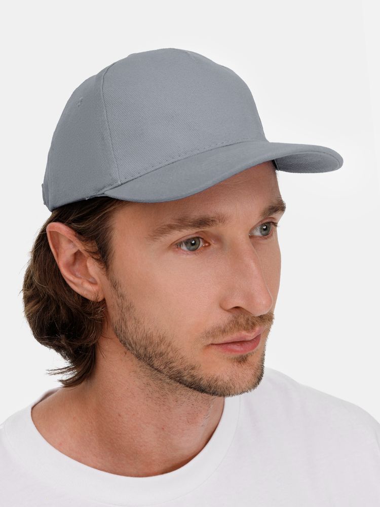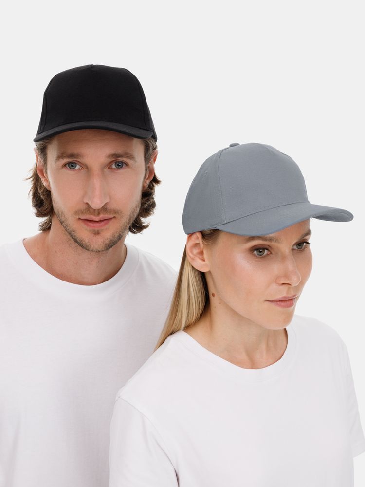 Модель бейсболки с 5-ю клиньями без лобового шва из плотного чесаного хлопка.
