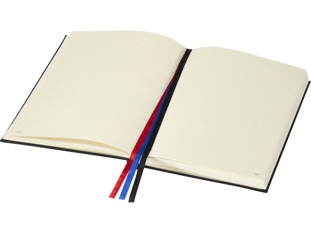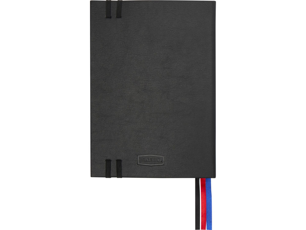 Блокнот Alder формата A5 изготовлен из переработанного пластика, имитирующего кожу, и имеет 192 листа из кремовой бумаги плотностью 80 г/м², оформленные в виде планировщика, идеально подходящего для ведения дневника и поддержания порядка в течение всего года. Имеет две эластичные резинки, три ленточные закладки (черная, красная и синяя), 200 разноцветных липких заметок (по 40 каждого цвета) и удобный бумажный кармашек для отдельных заметок. На задней обложке тиснением нанесен логотип JournalBooks, упакован в картонный слив-бокс белого цвета.