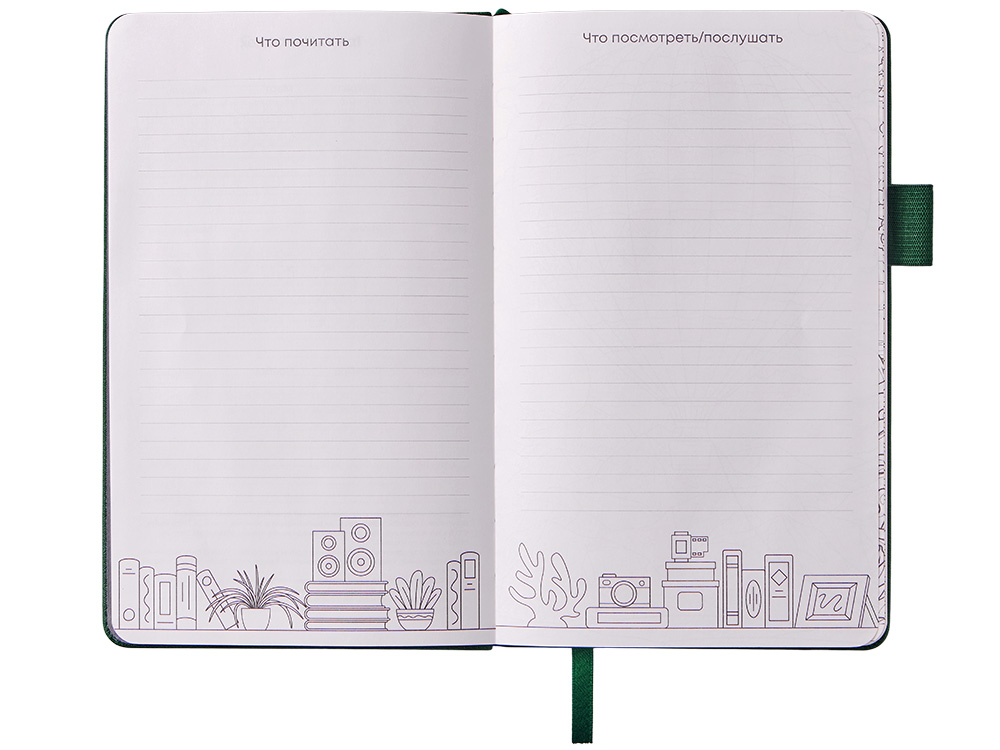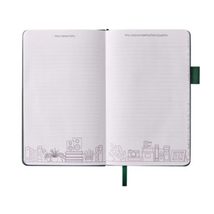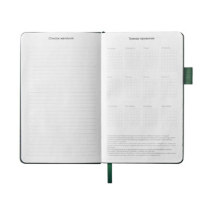 Стильный блокнот в твердой обложке из текстурной искусственной кожи, приятной на ощупь. 96 очень приятных на ощупь листов повышенной гладкости с FSC-сертификатом обеспечивают комфортное письмо и аккуратный вид записей. Необычный для блокнота вводный блок включает трекер привычек, списки книг и фильмов, а также 4 страницы для раскрашивания с картинками и мандалами. Продуманные детали — резинка для закрытия, петля для ручки и ляссе — делают использование максимально удобным. Благодаря конверту для мелочей вам всегда будет куда положить визитки, записки и другие мелочи. Идеальный вариант для выстраивания баланса между работой и отдыхом.