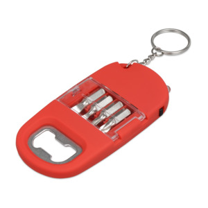 Брелок-открывалка с отвертками и фонариком "Uni", софт-тач, красный