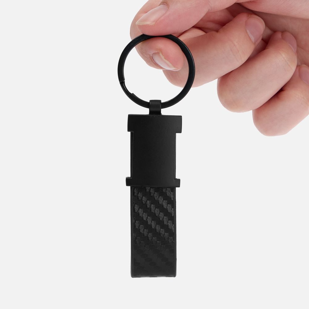 Aksel — это не просто брелок, а выразительный акцент, который сочетает в себе стиль и функциональность. Текстурный эффект карбонового волокна придает изделию динамичный технологичный облик, уместный в любом стиле — от делового до повседневного.