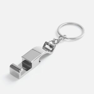 Virke — это многофункциональный аксессуар, в котором сочетаются металлический брелок с глянцевой поверхностью, компактная подставка для смартфона и открывалка для напитков.