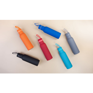 Завинчивающаяся колба защищает от протекания, удобная силиконовая ручка позволяет комфортно носить бутылку.
