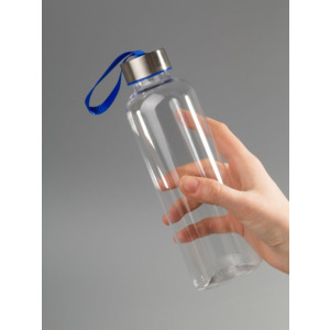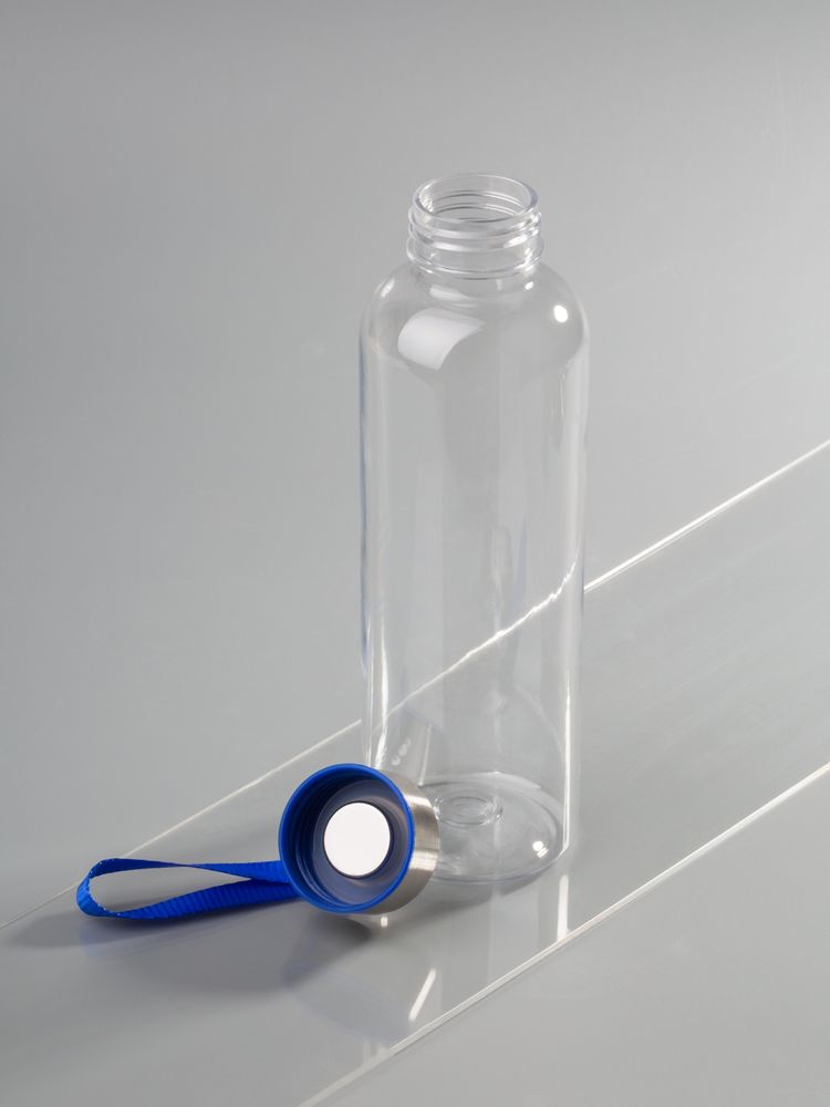 Бутылка для воды классической формы с удобной петлей для переноски и широкими возможностями по нанесению: помимо круговой УФ-печати доступны гравировка крышки или полноцветный трансфер на ремешке.