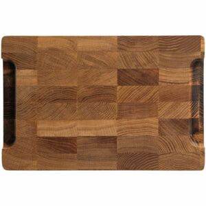 Торцевая разделочная доска из дуба — выбор шеф-поваров и подарок премиум-класса. Главная особенность доски заключается в том, что древесные волокна в ней размещены перпендикулярно режущей поверхности, а не параллельно, как в обычных разделочных досках.