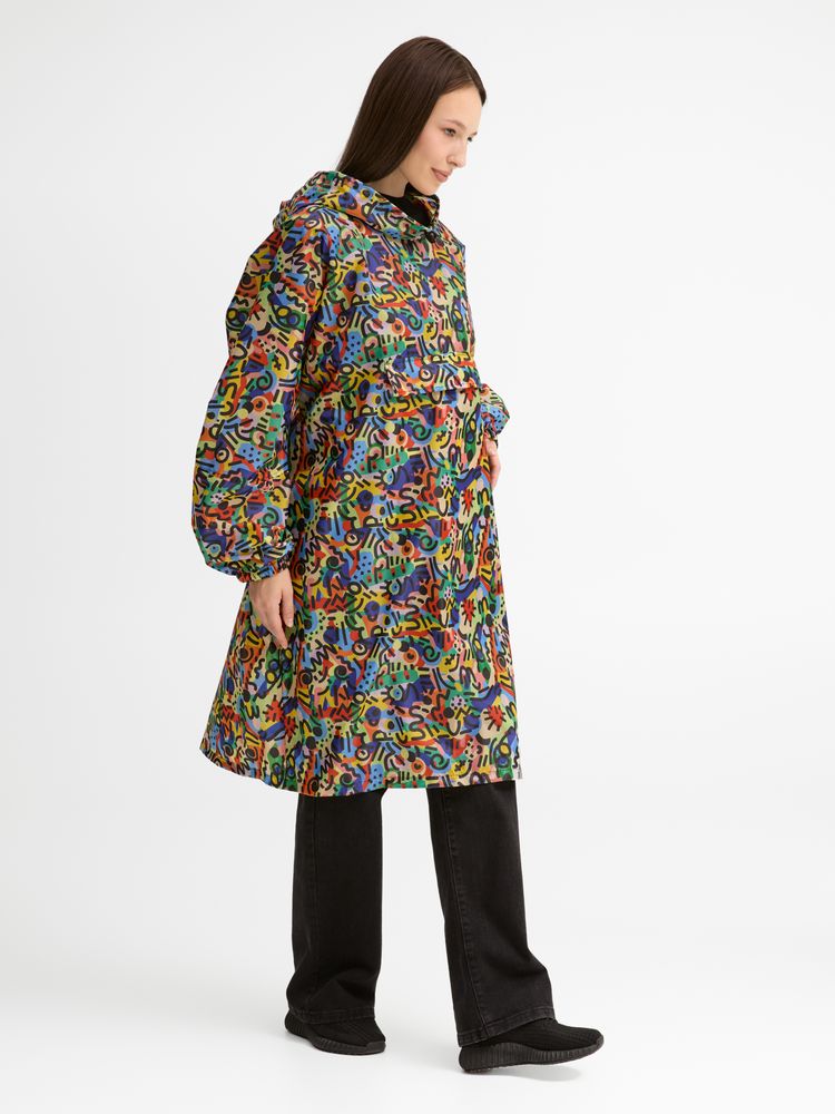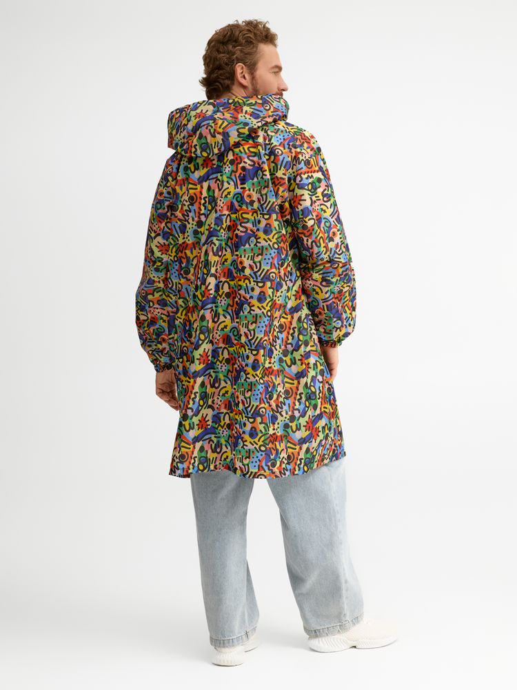 Приложите к заказу оригинал-макет закольцованного бесшовного (endless) узора или паттерна в виде квадрата или прямоугольника с разрешением 300 dpi в масштабе 1 к 1. Полные технические требования к оригинал-макетам смотрите в пункте «Сублимация».Дождевик-анорак с капюшоном из ткани таффета.