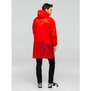 Плащ–дождевик на молнии с капюшоном и рукавами реглан. Ветрозащитные манжеты на рукавах.