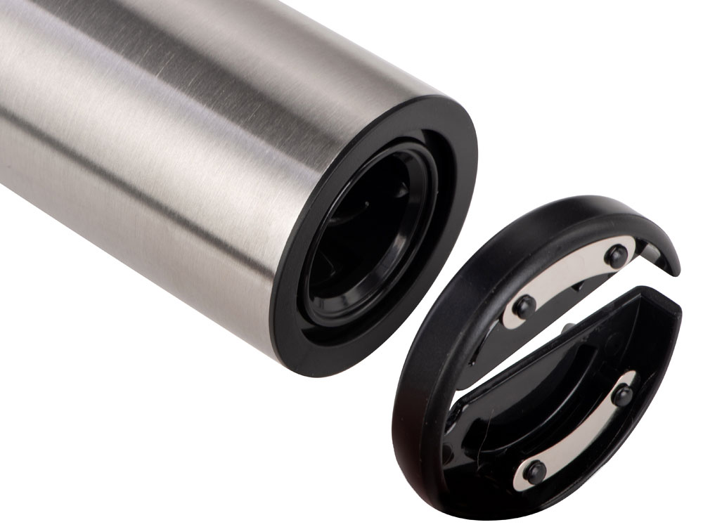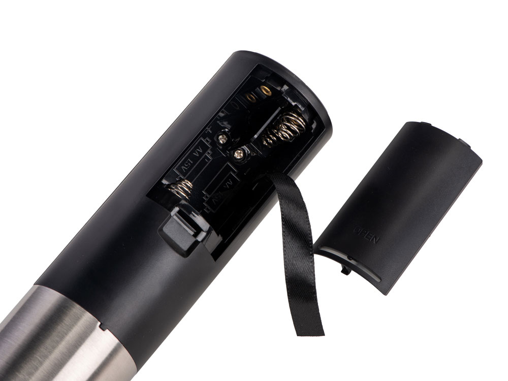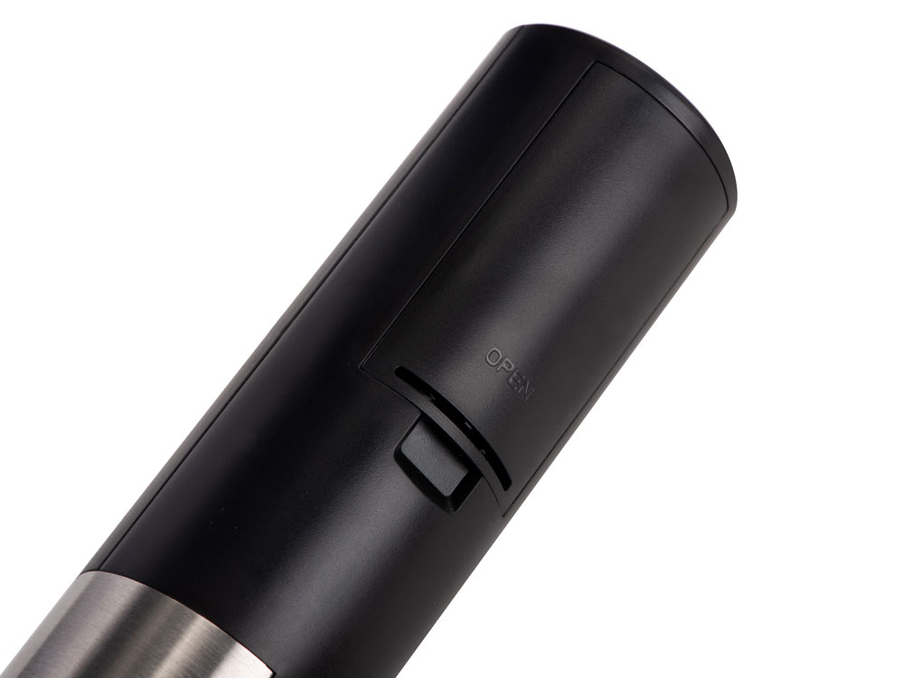 Электрический штопор «RIOJA» бренда Master of Wine — прекрасный подарок любителю вина: эта модель поставляется в элегантной упаковке в комплекте с подставкой, которая также может выступать в роли ножа для фольги. Благодаря устойчивой и функциональной подставке штопор всегда будет под рукой, а внешний вид «Rioja» станет настоящим украшением барной стойки или кухни. Верхняя часть корпуса выполнена из матового пластика, который легко очищается от загрязнений влажной тканью. Тактильно приятный текстурный материал для удобства использования. Кнопки спуска и поднятия штопора визуально выглядят как одна большая кнопка, при нажатии на нижнюю часть которой спираль вкручивается в пробку по часовой стрелке, а при нажатии на верхнюю — освобождает пробку, вращаясь в противоположном направлении. От пользователя требуется лишь правильно расположить штопор на пробке и нажать на кнопку. Модель работает от 4 батареек АА, не имеет внутреннего аккумулятора. Батарейки не прилагаются в комплекте. - подставка с функцией ножа для фольги в комплекте - легко откупоривает вино - эргономичное строение: спираль полностью спрятана в корпусе, что обеспечивает долгий срок службы и защищает от порезов по неосторожности - дизайн продолжает общий стиль Master of Wine, можно сочетать с другими товарами бренда для создания сета - украсит собой любую кухню, благодаря подставке можно разместить удобным образом - понятная инструкция на русском языке в комплекте «Rioja» предназначен для пробок диаметром 20-24 мм и высотой до 44 мм. Внешний диаметр горлышка бутылок не должен превышать 35 мм, внутренний — быть в диапазоне от 17,5 до 23 мм.