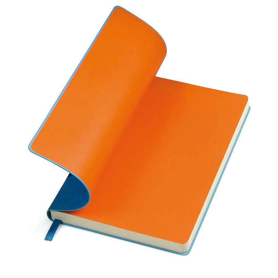 Ежедневник недатированный с мягкой термоактивной обложкой и популярной комбинацией цветов Термоактивный PU материал Velvet Цвет обложки, близкий к Pantone 2386C Цвет форзаца, близкий к Pantone Orange 021U Внутренний блок 256 страниц в линейку Идеально скругленные углы блока Кремовая FSC бумага 70 г м2 Ляссе в тон обложки Индивидуальная упаковка: фирменный сливбокс