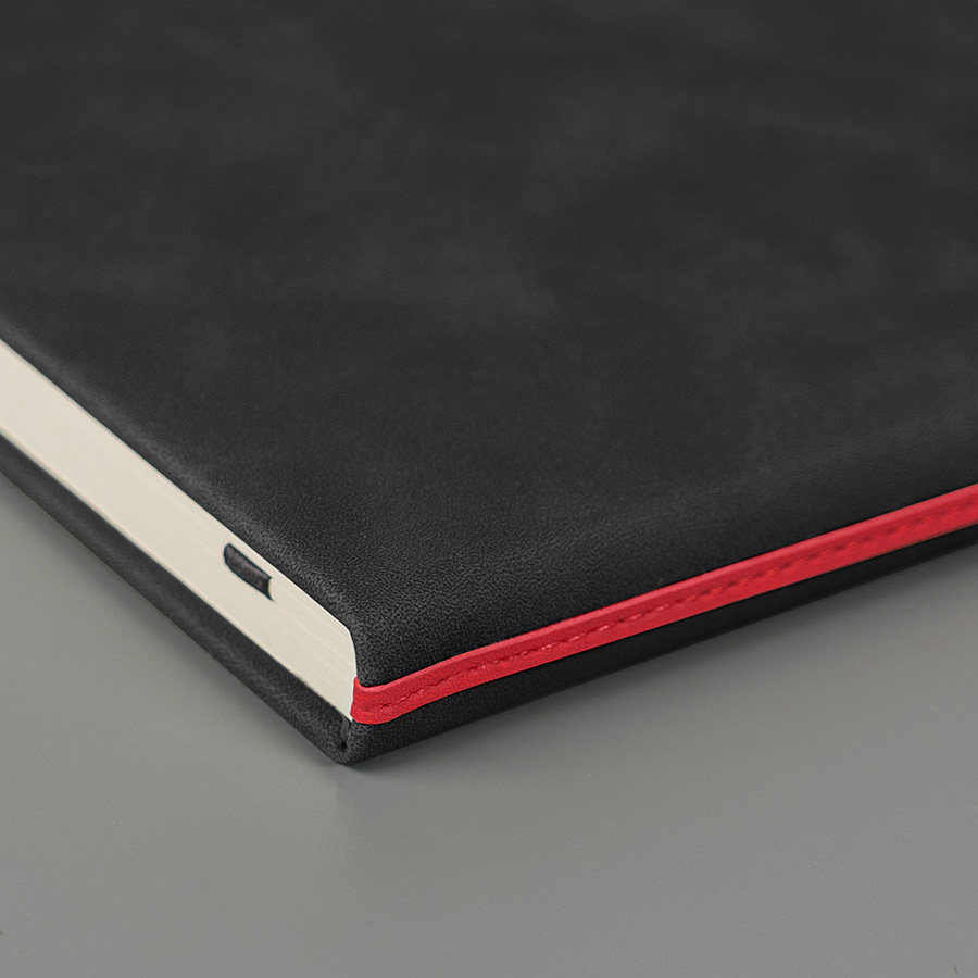 Ежедневник недатированный Muse, черный, формат А5, с декоративной красной полосой, блок в линейку