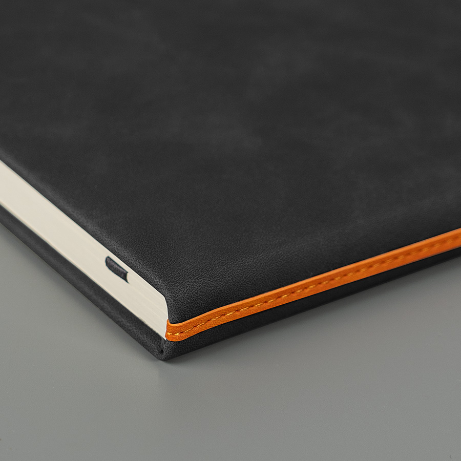Ежедневник недатированный Muse, черный, формат А5, с оранжевой декоративной полосой, блок в линейку