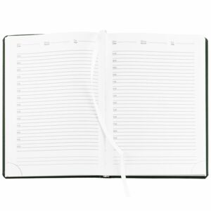 Ежедневник в твердой обложке c поролоном, выполнен из материала La Fite, зеленый FF, дополнен ляссе белого цвета.