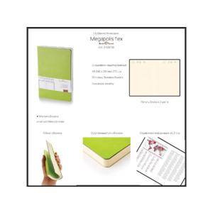 Недатированный ежедневник «Megapolis Flex» от бренда Bruno Visconti - это качественный корпоративный подарок по выгодной цене, произведенный специально под персонализацию. Представлен в универсальном формате А5 и состоит из 272 страниц. Элегантная закругленная flex обложка из гладкого кожзама имеет гибкую конструкцию и приятна на ощупь. А интегральный переплет позволяет сэкономить место в деловой сумке или портфеле – ежедневник можно просто свернуть в трубку или согнуть пополам. В ежедневнике «Megapolis Flex» есть полезная справочная информация и телефонная книга, а также страницы для записи идей, мыслей и составления рабочих планов. Для изготовления страниц используется качественный бежевый офсет повышенной плотности (70 г/кв м). Блок не привязан к конкретным датам – они указываются в выделенном поле вверху страницы. Тонированная бумага не дает глазам утомиться даже при длительной работе. Все ежедневники от бренда Bruno Visconti можно персонализировать с помощью тиснения обложки - золотой или серебряной фольгой. Наши ежедневники помогут быть успешным и эффективным в карьере и повседневной жизни!