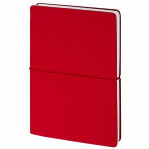 Ежедневник с гибкой обложкой выполнена из материала Nice Touch, красный и Latte, красный (внутренняя часть обложки), дополнен горизонтальной резинкой в цвет обложки. Внутри корешка — специальное место для крепления ручки размером до 15х1 см.