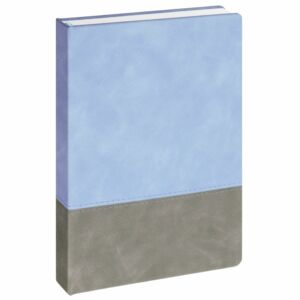 Ежедневник с твердой обложкой, без поролона, со сшивкой материалов Nubuck Touch, серый СС, и Nubuck Touch голубой JJ, дополнен двойным ляссе и петлей-резинкой для ручки.