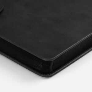 Ежедневник с твердой обложкой и фигурным магнитным клапаном, дополнен капталом и двойным ляссе.