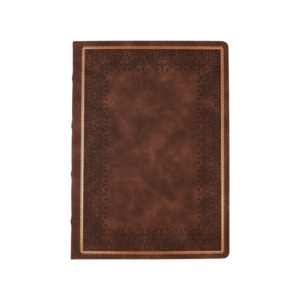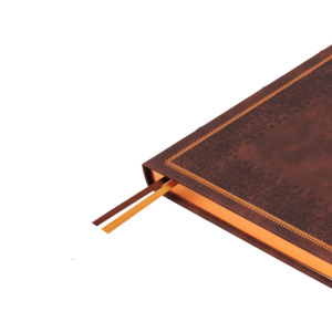 Недатированный ежедневник "Royal" формата А4 с твердой обложкой из искусственной кожи с имитацией нубука украшен художественным бронзовым и блинтовым тиснением. Внутри 192 страницы, выполненные из качественной бежевой бумаги в линейку плотностью 140 г/м². Два шелковых ляссе в цвет обреза блока и обложки облегчают навигацию по записям. Французский корешок дополнительно декорирован изящным бронзовым тиснением в виде виньеток. Скругленные углы обложки и блока подчеркивают стильный дизайн изделия, а блеск бронзового обреза дарит ежедневнику благородный и роскошный внешний вид.