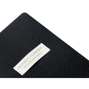 Еженедельник А6 с нашивкой — компактный и стильный вариант для планирования недели, заметок и коротких рабочих записей. Гибкая обложка из искусственной кожи с мягкой фактурой выглядит строго, а светлая нашивка добавляет аккуратный дизайнерский акцент. Золотой обрез подчёркивает характер модели и красиво смотрится вживую. Внутри — недатированный блок формата А6 (84×160 мм) на бежевой бумаге 80 г/м². Книжный переплёт хорошо раскрывается, а скруглённые углы одновременно придают еженедельнику премиальный вид и защищают края при носке. Ляссе‑закладка выполнена в цвет обложки и помогает быстро находить нужную страницу.