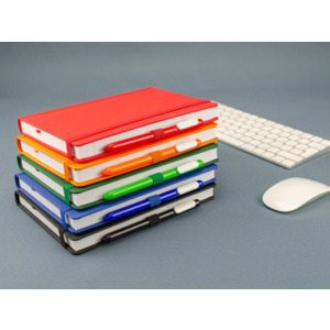 Ежедневник с твердой обложкой без поролона, выполнен из материала Soft Touch, черный АА, дополнен резинкой шириной 1 см, петлей-резинкой для ручки, капталом и ляссе черного цвета.