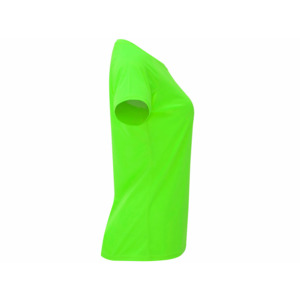 Спортивная футболка с коротким рукавом реглан для женщин. Круглый вырез горловины с отделкой плоским швом. Рукав сложного кроя для обеспечения дополнительного удобства при занятиях спортом. Отделка плоским швом с застилом по пройме и рукавам. Технологичное полотно с функцией DRY CONTROL и защитой от UV излучения