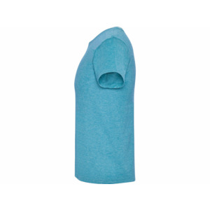 Футболка без боковых швов с коротким рукавом в меланжевом эффекте. Риб горловины 1х1 дополнительно укреплен двойной строчкой.
