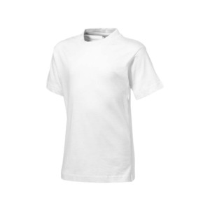 Детская футболка с короткими рукавами Ace. Детская модель со швами по бокам. Резинка с эластаном и двойной строчкой на воротнике. Лента от плеча к плечу. Однослойная джерси, 100% хлопок. 150 г/м².