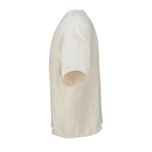 Футболка оверсайз унисекс с круглым вырезом, без боковых швов, высокой плотности. Выполнена из смеси переработанного хлопка (50%) и обычного хлопка (50%).
