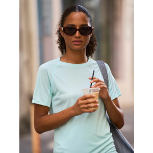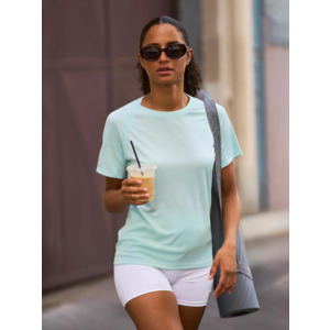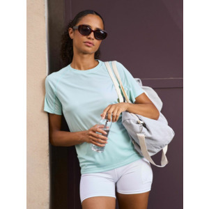 Женская спортивная футболка из дышащего и быстросохнущего материала. Приятная на ощупь и легкая ткань не стесняет движений.