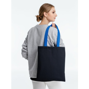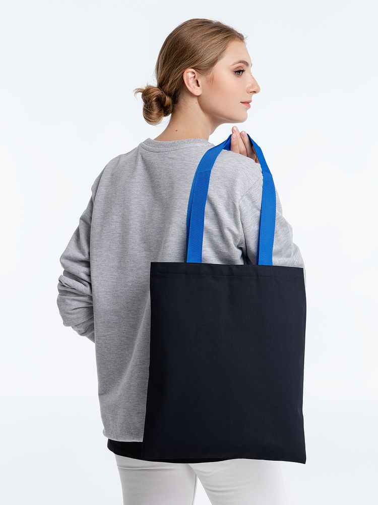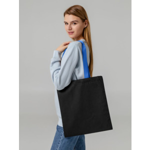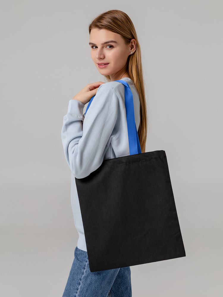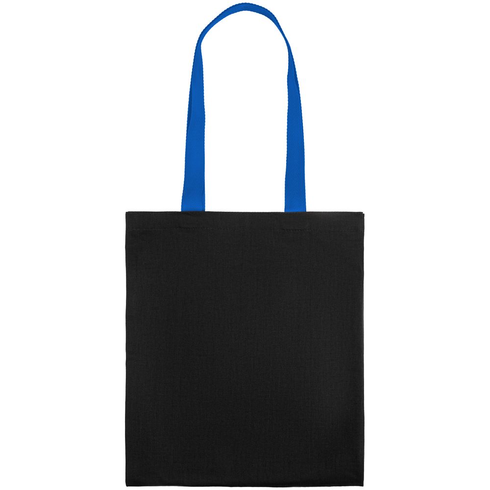 Холщовая сумка BrighTone, черная с ярко-синими ручками