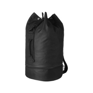 Водонепроницаемый спортивный вещмешок из переработанного РЕТ-пластика с вместительным 20 основным отделением объемом 20 литров, застежкой на шнурке, боковой ручкой и регулируемым плечевым ремнем. Также имеет отдельное нижнее отделение на молнии для небольших предметов.