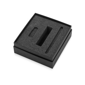 Коробка с ложементом для зарядного устройства, ручки и флешки. Коробка изготовлена из переплетного картона кашированного дизайнерской бумагой эфалин, ложемент изготовлен из поролона премиум-класса. Размеры секций: для флешки - 55 х 19 х 8 мм, для зарядного устройства и проводов - 97 х 23 х 35 мм, для ручки - 137 х 11 х 10 мм.