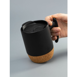 Эта кружка — стильное сочетание функциональности и дизайна. Корпус из керамики сохраняет напиток теплым, нижняя часть из пробки защищает поверхность от нагрева и скольжения, а пластиковая крышка предотвращает проливание. Эргономичная ручка делает использование особенно удобным.