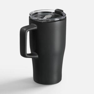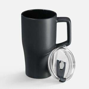 Эргономичная ручка удобно лежит в руке, а прозрачная крышка с отверстием для питья не дает содержимому разлиться на ходу или быстро остыть. Последнее особенно важно с учетом большого объема — 520 мл чая, кофе или какао хватит надолго.