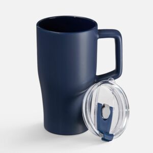 Эргономичная ручка удобно лежит в руке, а прозрачная крышка с отверстием для питья не дает содержимому разлиться на ходу или быстро остыть. Последнее особенно важно с учетом большого объема — 520 мл чая, кофе или какао хватит надолго.