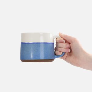 Нижняя половина кружки покрыта реактивной глазурью — особым видом керамического покрытия, компоненты которого вступают в химическую реакцию во время обжига при температуре 1200°C и выше. Из-за непредсказуемого взаимодействия компонентов создаются уникальные переливы, узоры и текстуры, поэтому в партии невозможно найти два абсолютно одинаковых изделия.Емкость 520 мл.