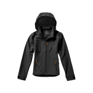 Женская куртка софтшел Langley. Стандартный покрой. Отстегивающийся капюшон на шнурках со стопперами. Обратная молния по центру и на карманах для рук. Регулируемые манжеты на липучках. Отражающий лого сзади. Водонепроницаемый 5000 мм. Дышащий 3000 мм. Ткань эластична в четырех направлениях. Ветронепроницаемая. Ремешки на собачку (второй комплект в цвете антрацит). Ткань из 90% полиэстера и 10% эластана, склеенного со 100% полиэстеровым микрофлисом. 300 г/м².