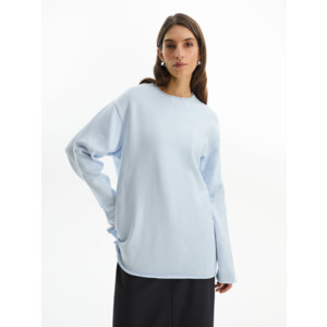 Лонгслив Fuori средней плотности с широким воротом, спущенной линией плеча и свободно подворачивающимися краями по низу, на рукавах и вороте, которые добавляют модели еще большей расслабленности. Прозрачная бирка с логотипом бренда на рукаве не нарушает минималистичности образа.