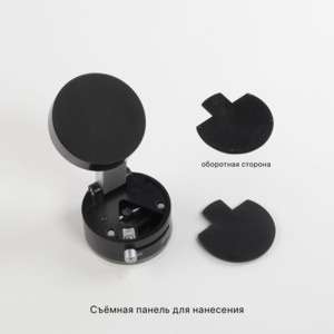 - Надежная фиксация. Мощная присоска обеспечивает крепкое сцепление с любой гладкой поверхностью, будь то лобовое стекло автомобиля, стол или зеркало. Для фактурных поверхностей (например, приборная панель с рельефным пластиком) используйте прозрачную подложку на клейкой основе, идет в комплекте. Перед наклейкой поверхность основания следует обезжирить.