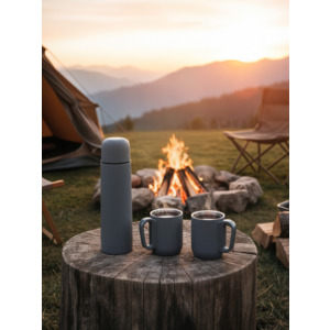 Набор "Гейзер" (термос, 2 кружки), покрытие soft touch серый