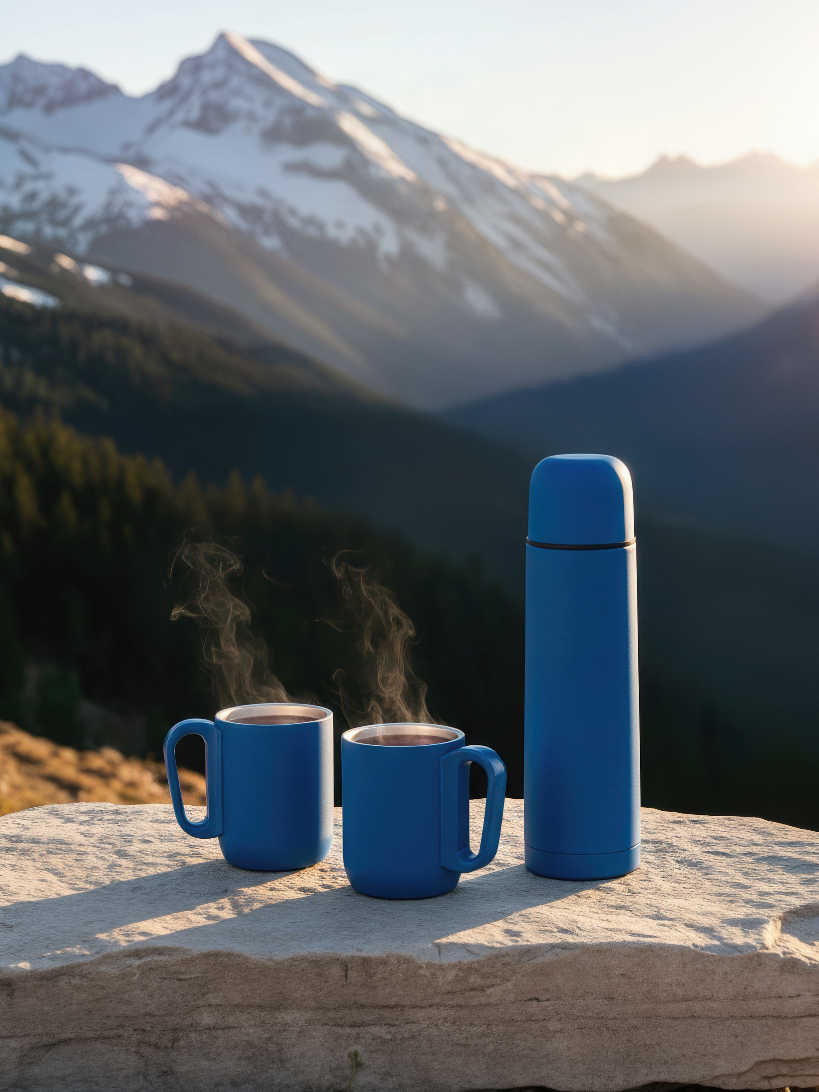 Набор "Гейзер" (термос, 2 кружки), покрытие soft touch синий