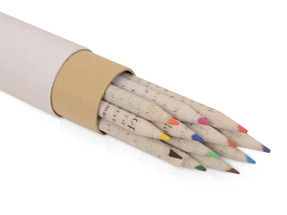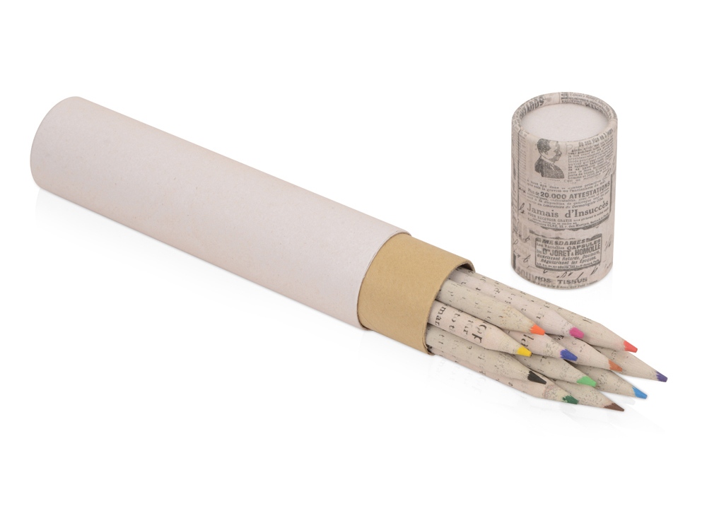 Набор цветных карандашей, выполненных в оригинальном корпусе из имитации газетной бумаги. Благодаря пеналу в форме тубуса удобно хранить или брать с собой. Набор состоит из карандашей 12 цветов.