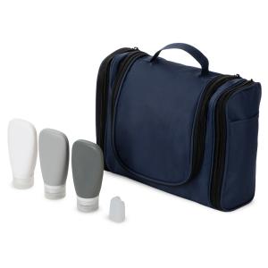 Набор "On air" состоит из двух предметов: Несессер для путешествий. Эргономичный и вместительный, имеет внутренние и внешние карманы и большое отделение внутри. Оснащён ручкой для переноски и крючком для подвешивания. Нейтральный лаконичный дизайн позволяет преподнести несессер как мужчине, так и женщине; Силиконовые ёмкости для косметических средств. Три флакончика по 90 мл каждый пригодятся для коротких поездок, а еще они вписываются в лимит большинства авиакомпаний по провозу жидкости в ручной клади. - силиконовые флакончики упакованы в полупрозрачную косметичку из EVA; - колпачок для зубной щётки в комплекте; - в несессере предусмотрены резинки и кармашки для мелких предметов, например, бритвенного станка.