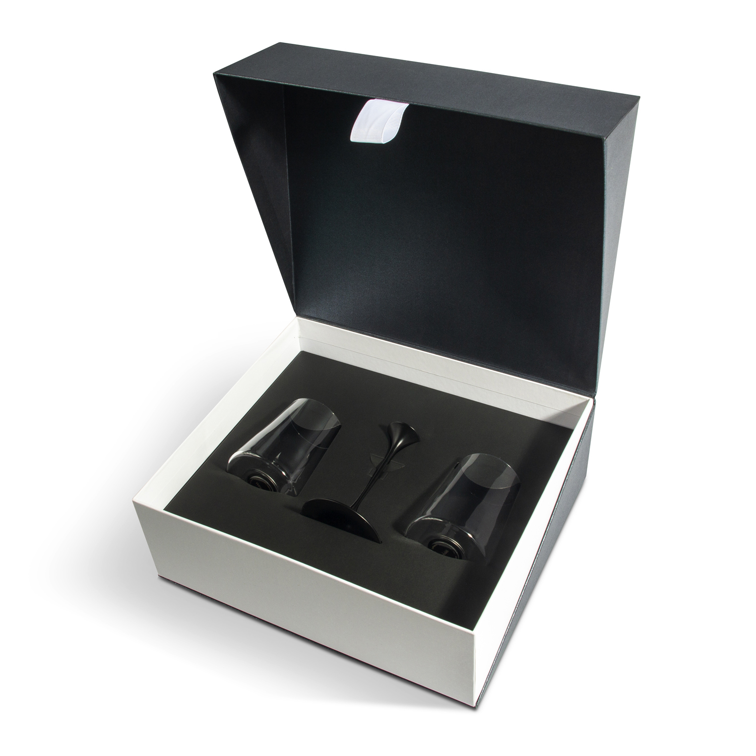 Ищете подарок, который сочетает в себе изысканность, практичность и незабываемые эмоции? Представляем наборы бокалов Trebonn SplitGlass в подарочной упаковке – это символ стиля, хорошего вкуса и незабываемые эмоции в одном подарке. Каждый набор тщательно подобран, чтобы дарить радость и создавать особую атмосферу. Будь то день рождения, юбилей, свадьба, корпоративное мероприятие или просто желание порадовать близкого человека, наши подарочные наборы станут воплощением ваших наилучших пожеланий. Коробка изготовлена из переплетного картона. Внутренний короб мелованной бумагой с ламинацией, внешний корпус — лайнером из металлизированной бумаги Magestic цвета «Антрацит», плотностью 120 г/м². Крышка фиксируется на магнит. Состав набора: • 2 бокала для белого вина • 1 ножка для бокала • 1 подарочная коробка с ложементом Размеры коробки: 30х27х11 см Внутренний размер коробки: 30x26x10 см