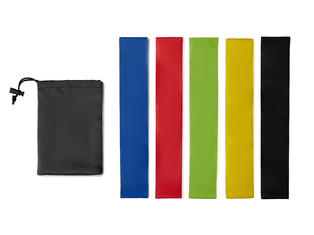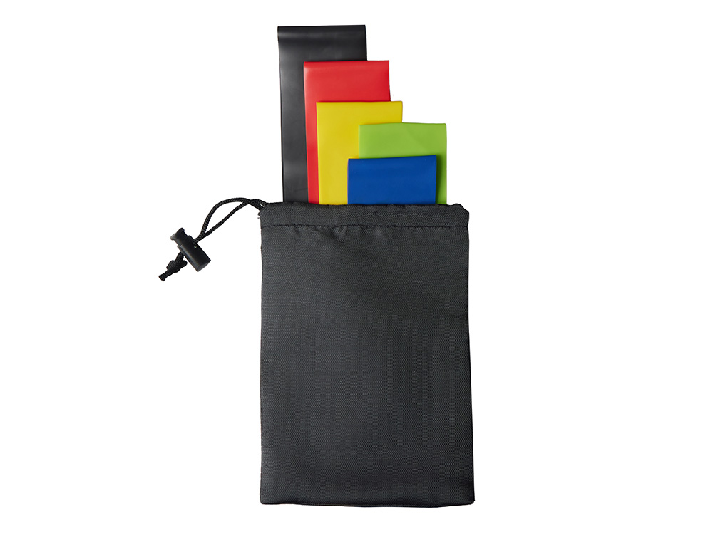Набор спортивных резинок Crane. Набор из пяти резинок высокой плотности с большим сопротивлением (60х5 см) различной силы. Каждая из резинок предоставляет определенную растяжку для работы над мышцами, увеличения силы и тонуса тела. Широко используется во всех видах упражнений. В комплекте чехол, который можно использовать для нанесения. Нейлон и латекс. Силовая нагрузка фитнес-резинок отличается в зависимости от цвета: Зеленый- 4,5 кг. Синий- 5,4 кг. Желтый- 7,2 кг. Красный- 8,2 кг. Черный- 9,1 кг.