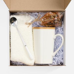 - Материал: кружка - фарфор, крышка - бамбук; ложка - нержавеющая сталь; носки - полиэстер 100%; коробка - микрогофрокартон, Т-23Е