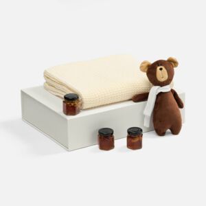 - Материал: шарф - акрил 100%; игрушка - велюр; набивка, шарфик - полиэстер 100%; баночки для меда - стекло; коробка - переплетный картон, бумага Malmero