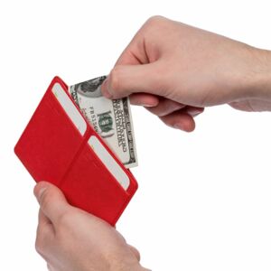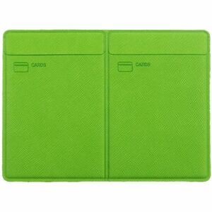 Обложка из искусственного материала, имитирующего сафьяновую кожу, с четырьмя карманами: для водительского удостоверения, свидетельства о регистрации, денег и пластиковых карт.
