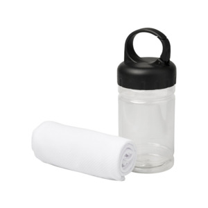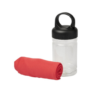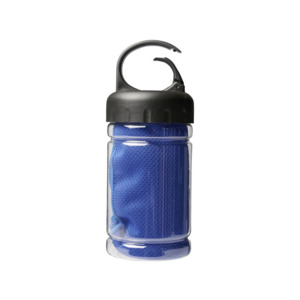 Охлаждающее полотенце Remy в ПЭТ-контейнере. Быстро впитывающее, быстро сохнущее и стираемое охлаждающее полотенце сохраняет прохладу во время тренировок или любых других занятий на свежем воздухе. Поставляется в ПЭТ-контейнере с ручкой и встроенным карабином для удобной переноски. Доступно в 5 ярких цветах. На контейнере изображен большой логотип, он также может быть и на самом охлаждающем полотенце. Размер: 30 x 80 см. PET. 0,096.