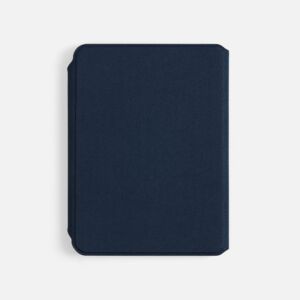 Обложка из ткани, на магнитной застежке с деревянной шильдой: